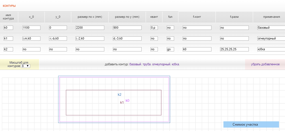 Далее определяем контуры объекта, которые будут использоваться при проектировании. Следующий параграф «контуры» это и делает. Он привязывает контур с конкретным именем к конкретной точке и соответствующему размеру.